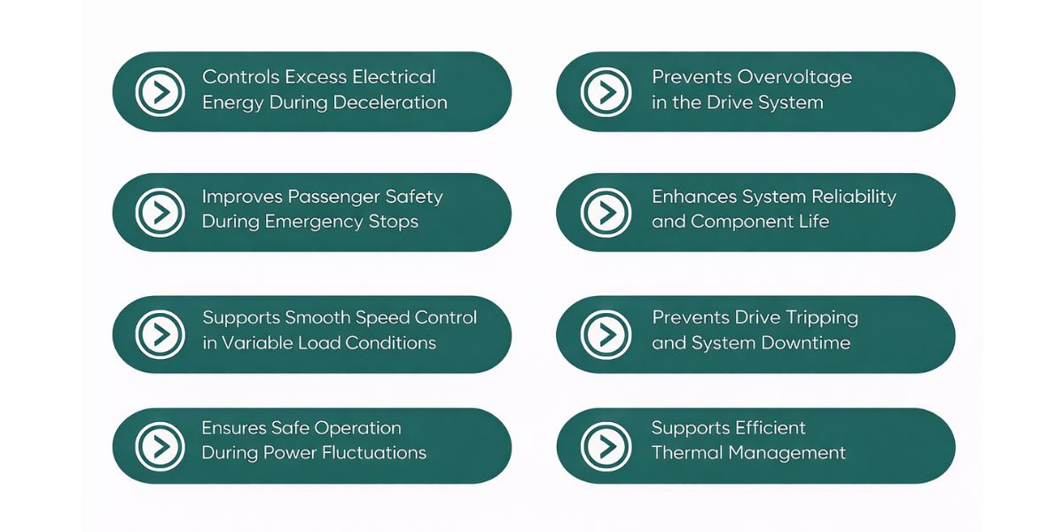 Electrical stress is one of the main reasons for early failure of elevator components. Without proper energy control, parts such as drives, capacitors, and motors experience excessive load during braking cycles.
