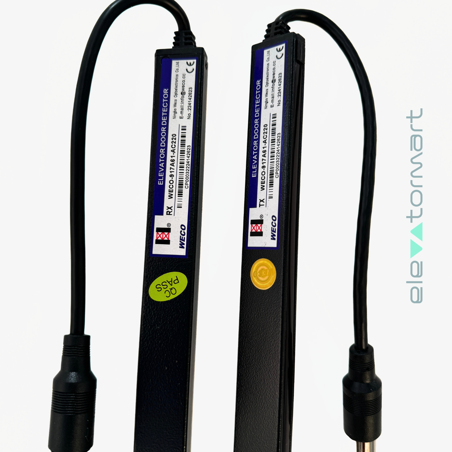 The WECO‑917B71-AC220 is an infrared light curtain safety sensor designed for elevator doors, providing non-contact detection to prevent door closure when obstructions are present. With 94 infrared beam pairs spanning up to 2 m in leng...
